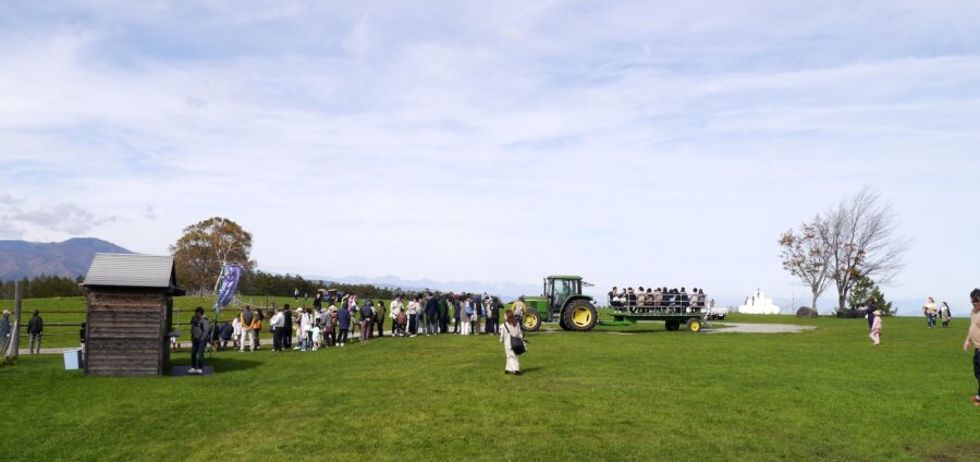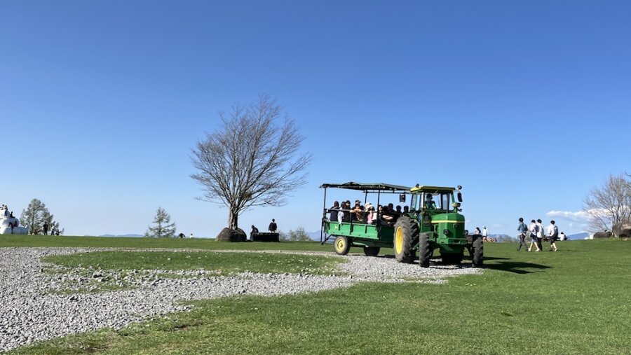 トラクターの荷台に乗ってのんびり牧場内を巡る大人気ツアー