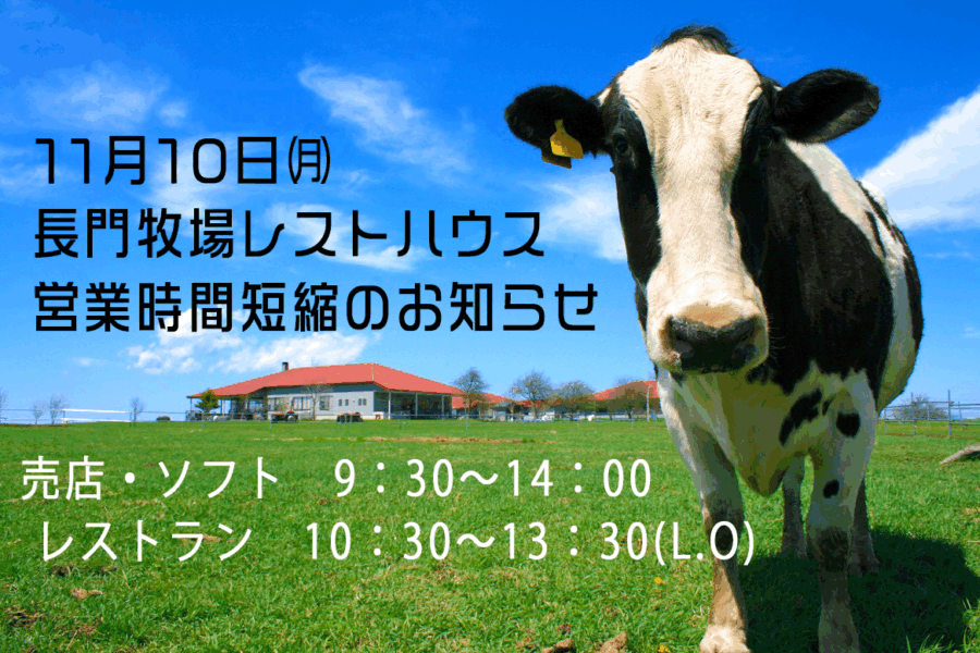 11月10日㈪は、牧場内の電気設備工事の対応のため時短営業となります。